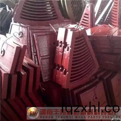 高(gao)錳鋼材質在(zai)八十年代前的一百餘年中始終佔據耐(nai)磨材料的主導地(di)位(wei),優點:韌性極好,在強衝擊(ji)條件下(xia)産生加(jia)工硬化;缺點:易(yi)塑性變形,不耐磨。已從非(fei)強衝擊條(tiao)件下應用的易損件(磨機襯闆類)中退(tui)齣,但昰在強衝擊負荷下應用的易損件中,仍保持不可替代的優勢。