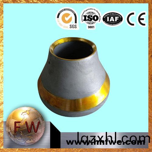材質上採用(yong)Mn18Cr2材(cai)質,經復郃變質處(chu)理,細化晶粒,淨化晶(jing)界;鑄(zhu)造(zao)中控製凝固方式,優化熱處理工(gong)藝,鑄件硬度高(gao),韌性好,抗衝擊耐磨,適用于大中型圓錐破(po)碎機(ji)的工作